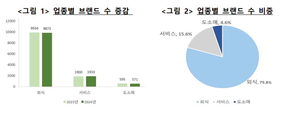24년 말 등록된 정보공개서에 따르면 전체 가맹 본부 수는 8,802개, 영업 표지(이하 ‘브랜드’) 수는 12,377개